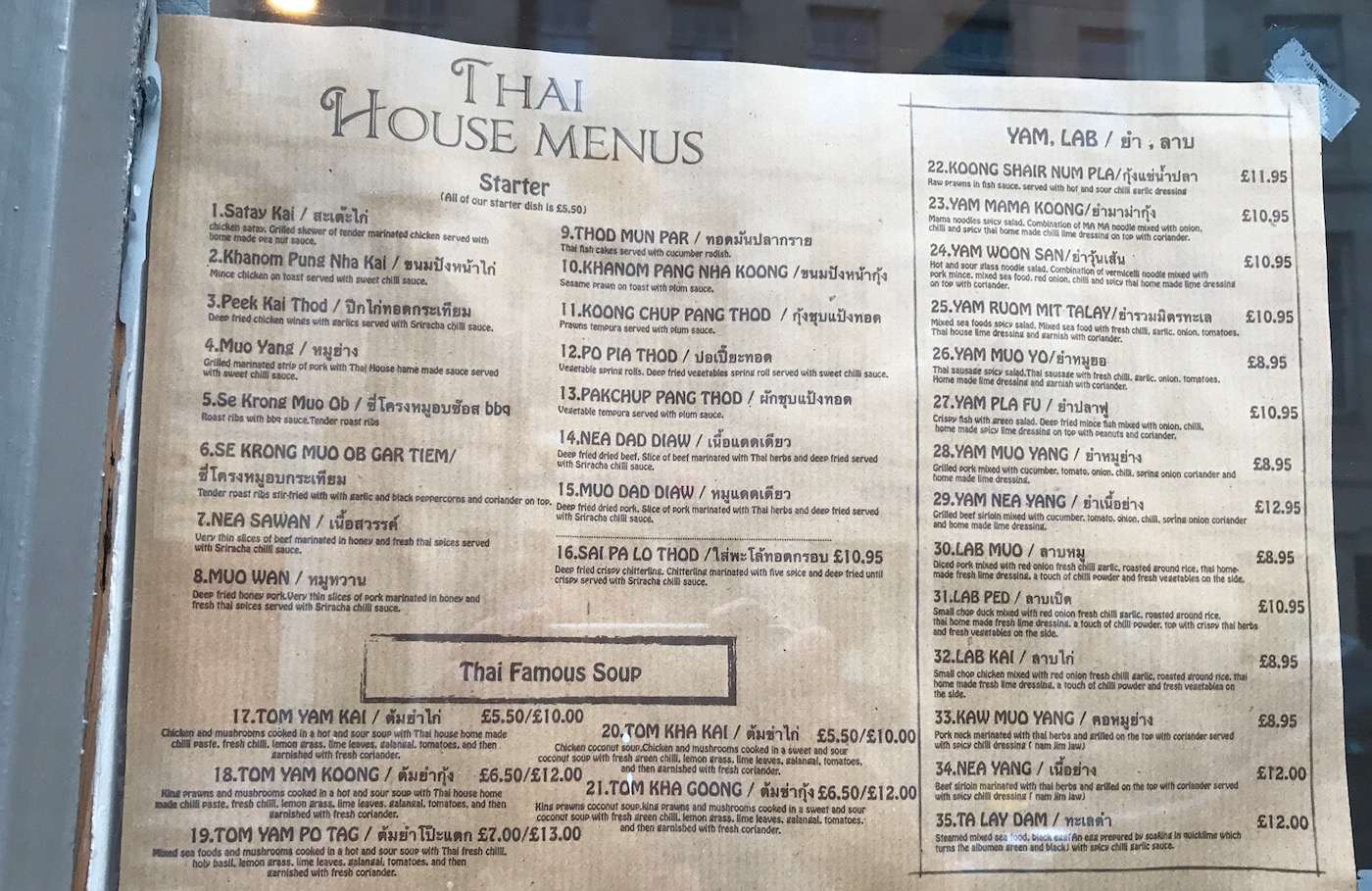 Thai House – The Menu