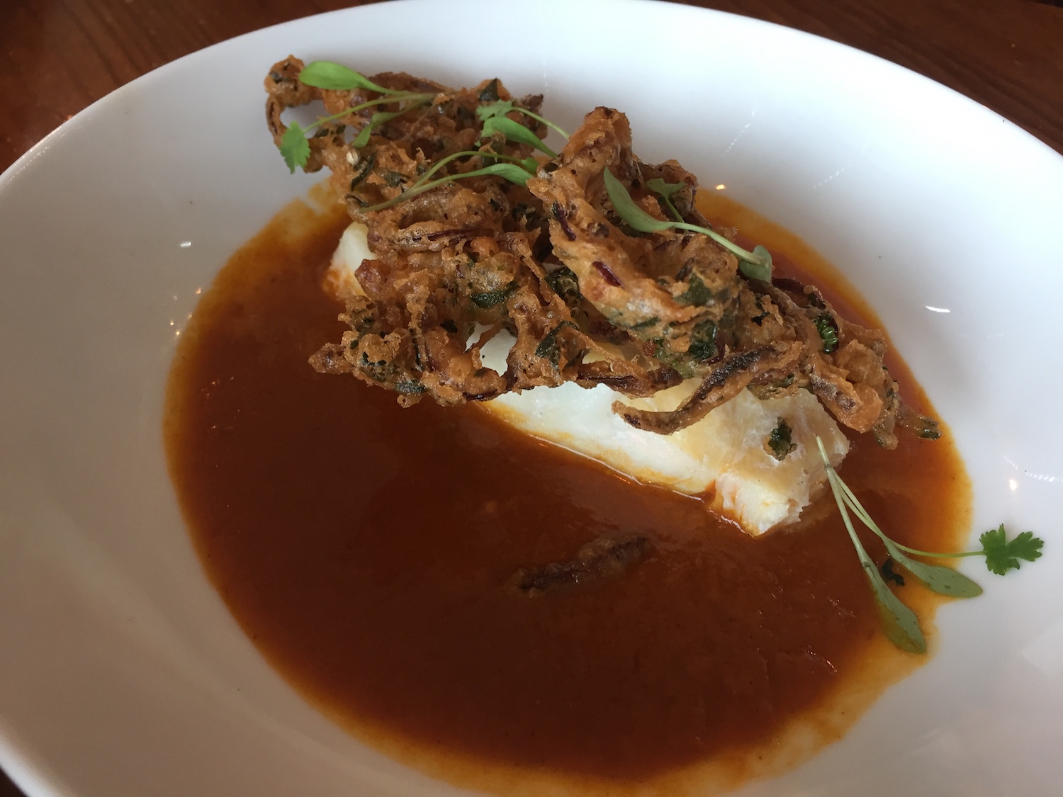 There’s a bloody incredible value lunch menu which features gems like this coley with fish pie sauce. I don’t even know how they can offer this as a main course for a mere nine of your English pounds. It’s chocka with salmon, mussels, prawns, and a better interpretation of a fish pie than I can recall.